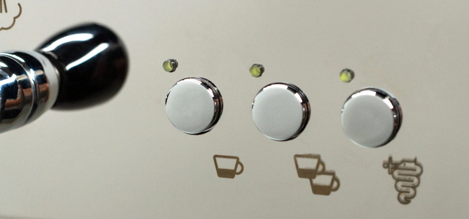 The two programmable buttons on the face of the machine allow you to pull single or double shots with one push, with a third button to brew manually. With the BZ13 DE Rosso, you have the best of both worlds. The machine can automatically pull shots, leaving you free to froth milk, cash out customers, or take a bite of breakfast. You can also brew manually to experiment with pulling shots or creating new brew recipes.