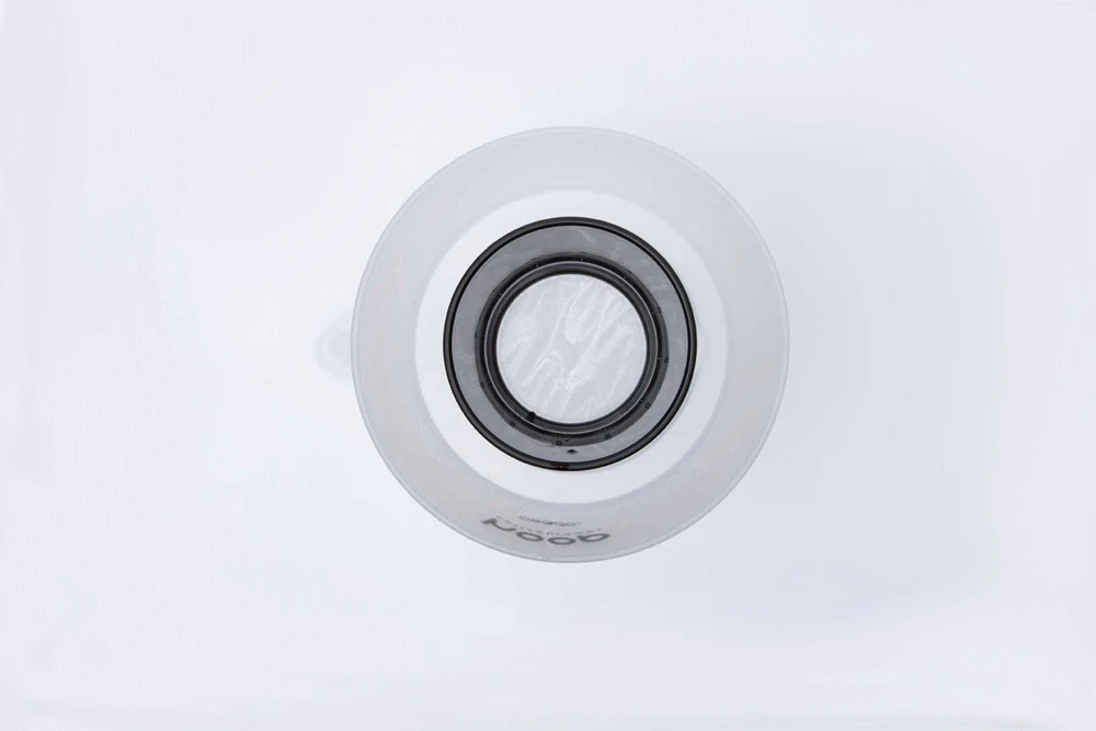 Termed a “no bypass” brewer by Ceado, Hoop’s two piece design consists of the lower Water Crown where brew water is introduced and the Filter Tower where a coffee filter and ground coffee are loaded. When brewing, water is poured into the Water Crown and is then evenly distributed across the grounds through 12 holes positioned around the circumference of the Filter Tower. Since the water is introduced to the coffee indirectly, it reduces the likelihood of channeling by preventing uneven or aggressive pouring from influencing water flow. AKA: No Bypass.