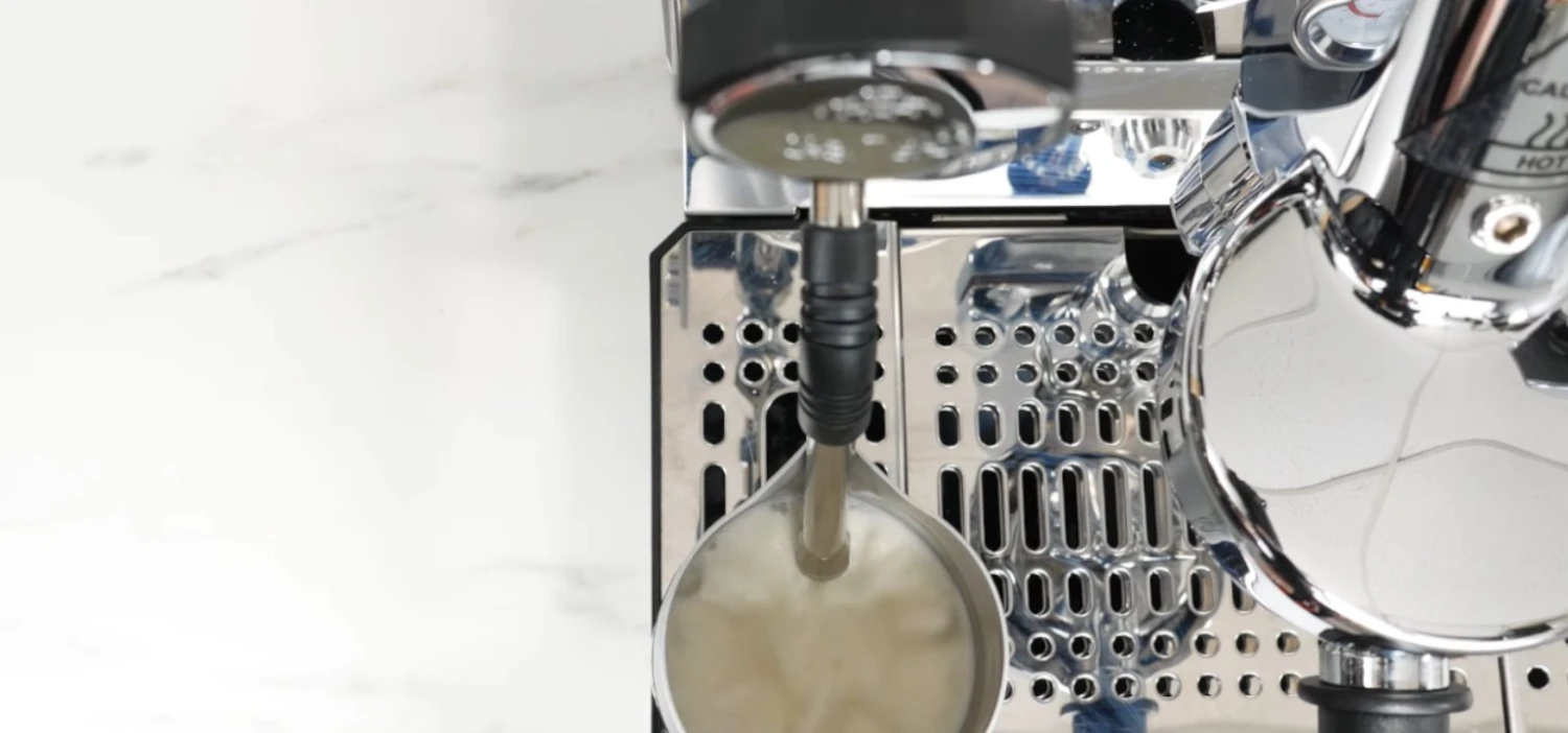 The steam wand is no-burn, and the two knobs only need half a turn to open up their respective valves. Perhaps one of the most intriguing advancements made by Crem is hands-free frothing. Simply place your frothing pitcher on the drip tray with the tip at your desired angle. As the froth expands, it will cover the tip and then heat the milk.