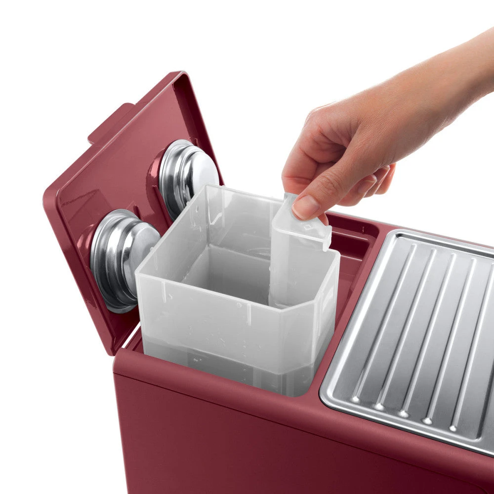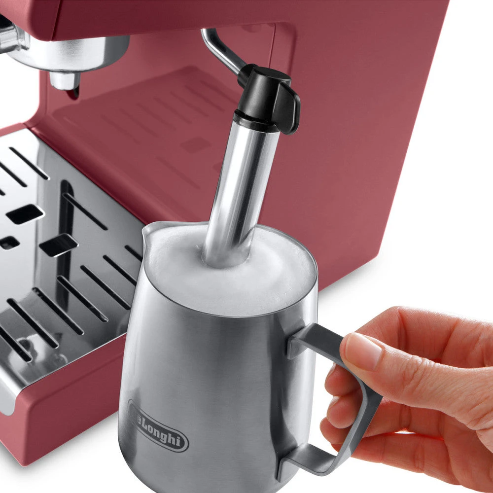 For anyone who is concerned about space, whether you have a crowded kitchen counter or you’re in a cramped city apartment, the DeLonghi ECP3220R features a compact, space-saving design. It’s under ten inches tall and under eight inches wide, small enough to fit inside other espresso machines.