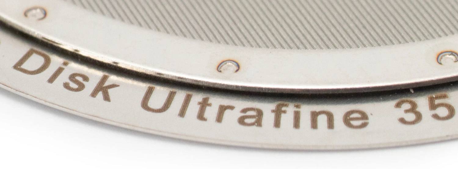 This filter’s holes are 150 microns in diameter for espresso. For a finer extraction, E&B Lab also has a 35 micron Aeropress filter available.