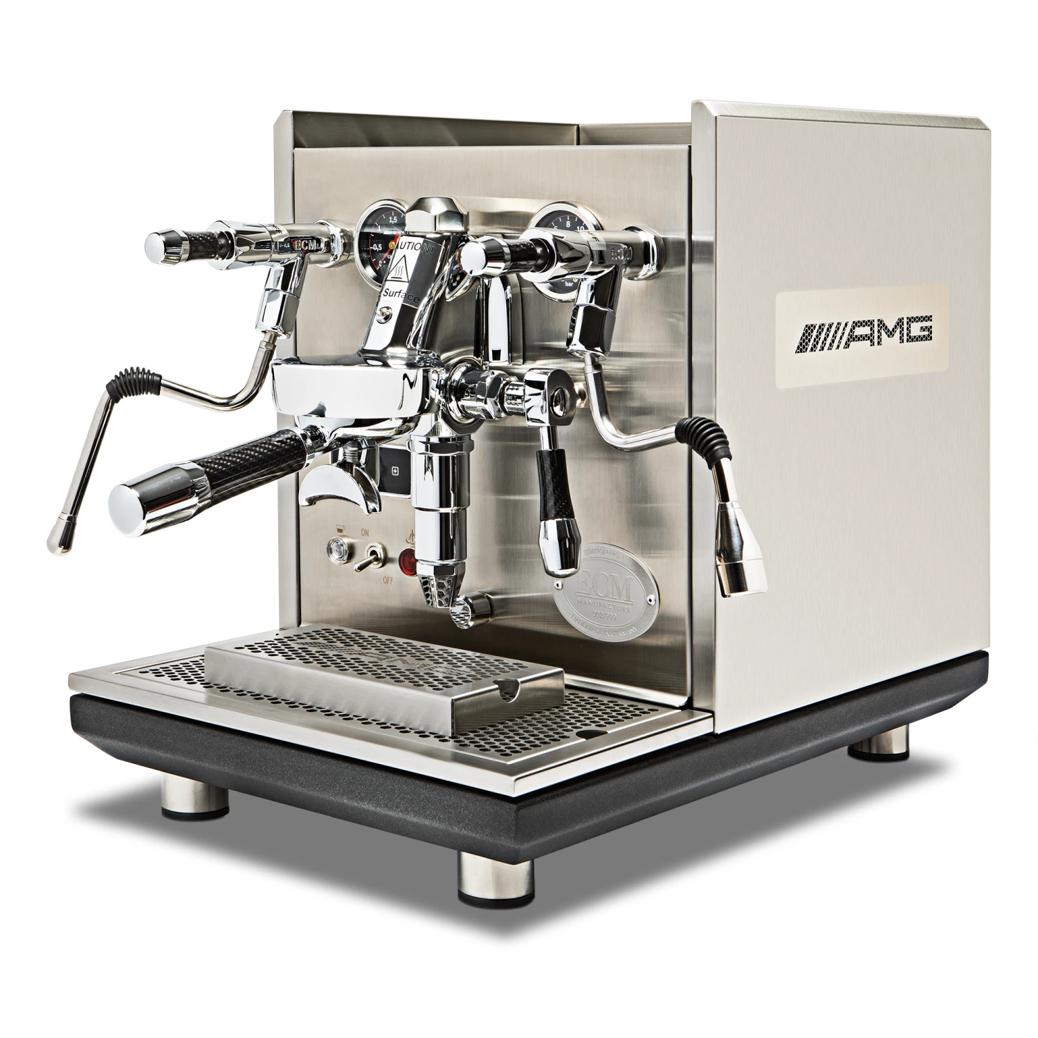 The ECM Synchronika is an industry best dual-boiler prosumer espresso machine with performance and flexibility that unlock the maximum potential of the home barista. This limited edition version pays tribute to the exquisite design of AMG automobiles with custom design elements and materials like the speedometer inspired pressure gauges and carbon fiber elements. This is your chance to own a piece of AMG and ECM history.