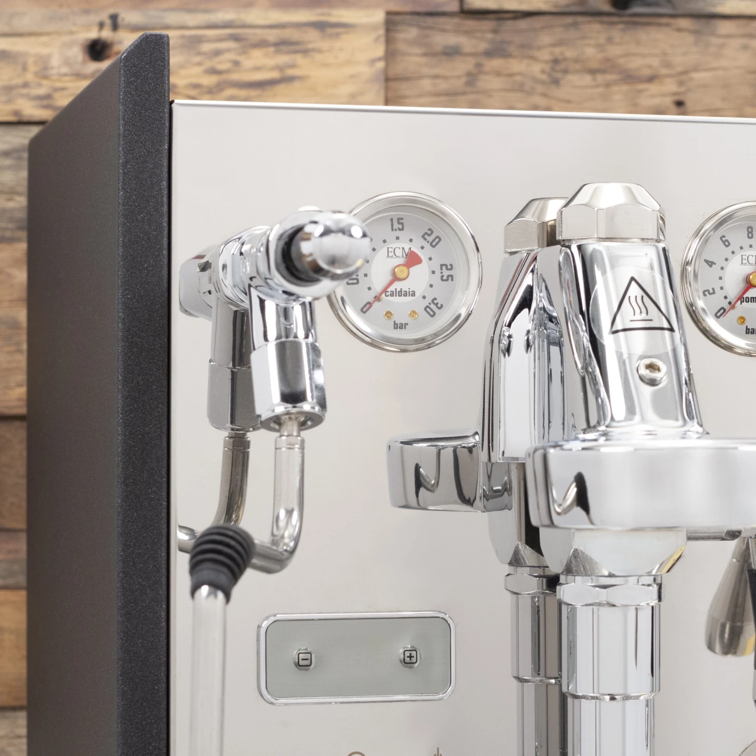 Less obvious advantages can be found in the iconic E61 brew group, which ECM has updated with stainless-steel internal components as well as a single top cap for a decidedly cleaner aesthetic that other machines lack. These stainless-steel internals add much greater durability and resistance to calcium build-up for more straightforward maintenance. When plumbed in, you can take advantage of longer, low-pressure pre-infusion which let you bring out the more unique flavor notes in specialty coffee.