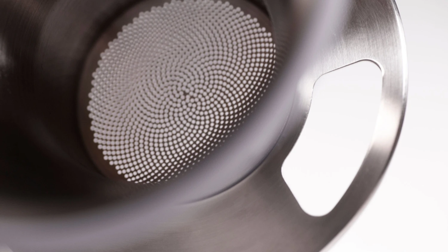 The Bloom Pour Over also makes use of a unique, patent-pending integrated microfilter with 1,502 holes that are 500 microns wide. The holes are organized in a spiral pattern to further enhance the speed and evenness of each extraction.