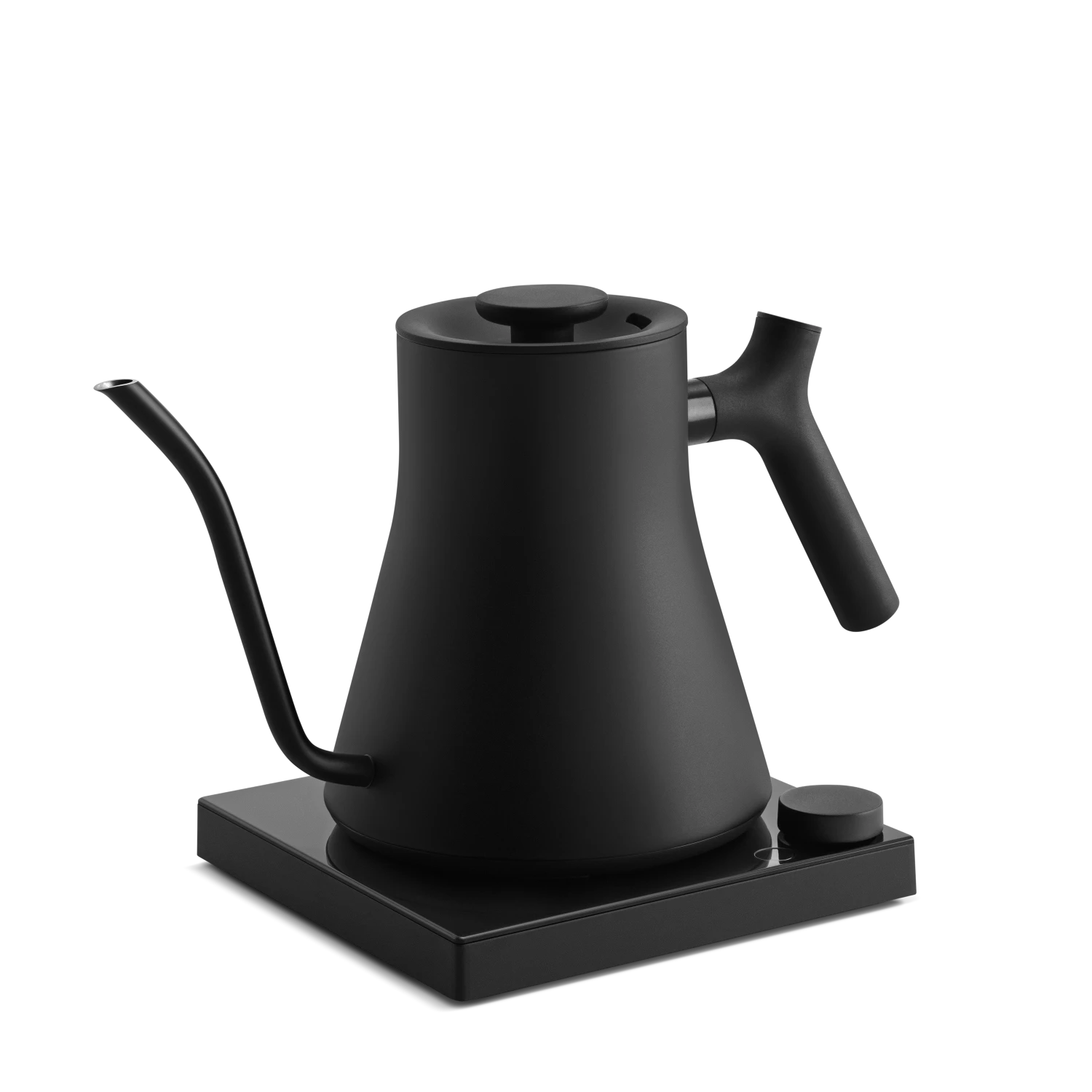 The Fellow Stagg EKG Pro Studio Edition electric kettle is a premium brewing tool that offers both precision and style. The Studio Edition of the Stagg EKG Pro features a stunning glass top and aluminum base, zinc frame, and a metal cap on the end of the handle.