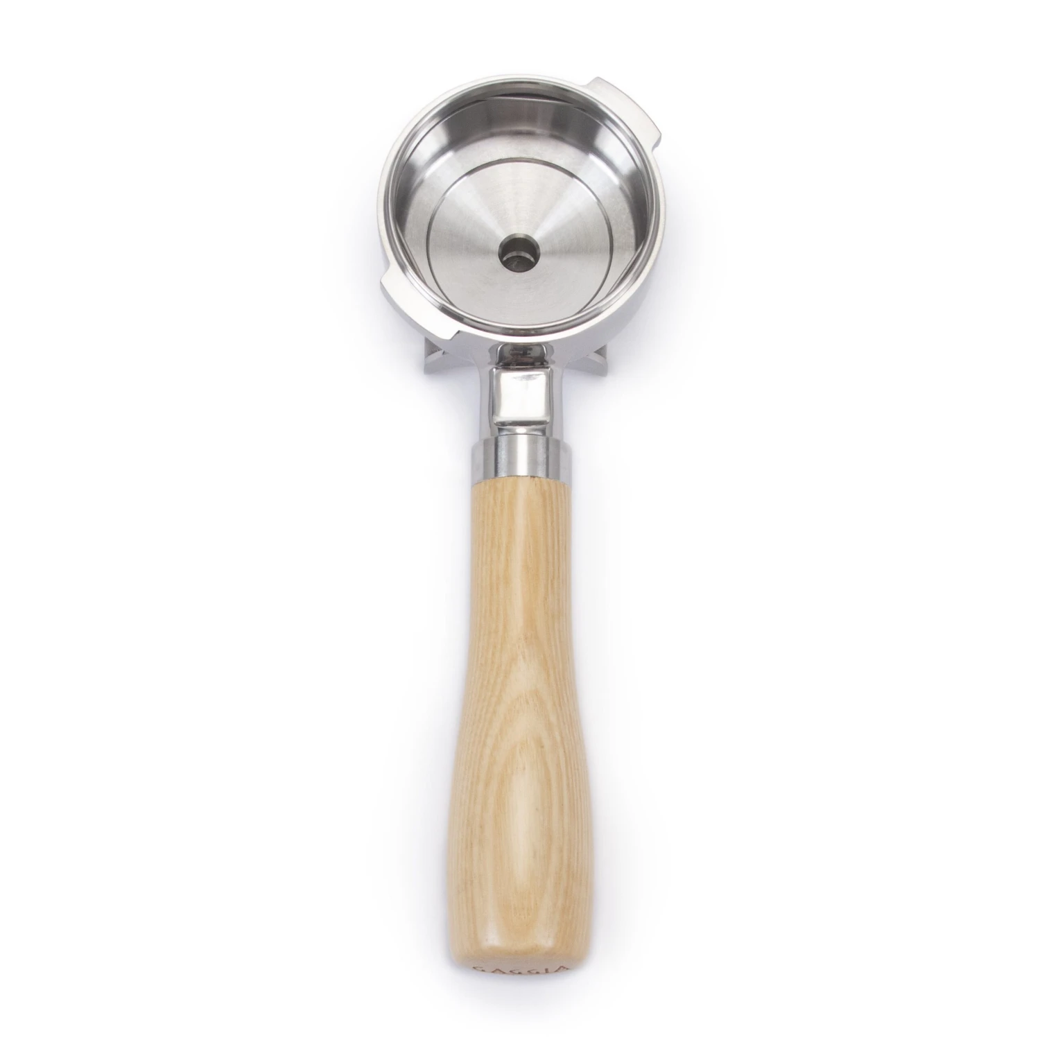 Designed by Gaggia for their Classic Pro espresso machine, the Gaggia Wooden Handle Portafilter is a beautiful and functional upgrade for your espresso setup. The Ashwood handle is comfortable to hold and well balanced with the filter head. For maximum heat retention, the filter head is made from chrome-plated brass, while the handle stays on brand with Gaggia logo cut into the end.