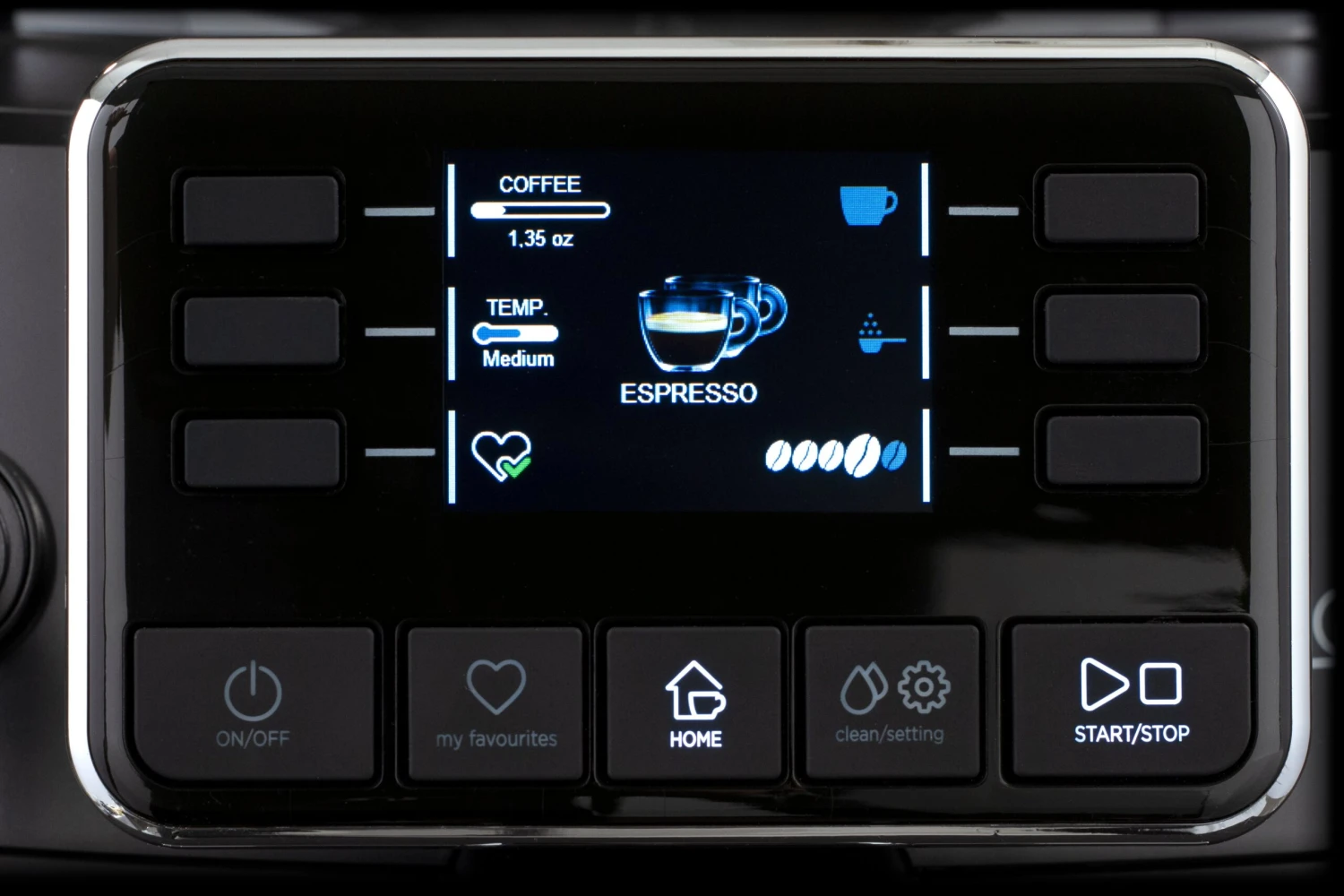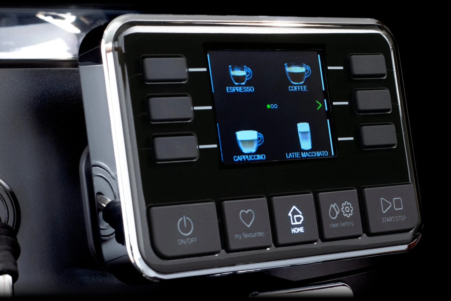 Gaggia’s Cadorna Milk is a 100% Italian manufactured super-automatic machine made for the home barista. The bean-to-cup machine sports a full color TFT screen display with backlight buttons to compliment it’s high-tech design. Users can access all of their favorite beverages, create & personalize user profiles, and access settings for increased usability.