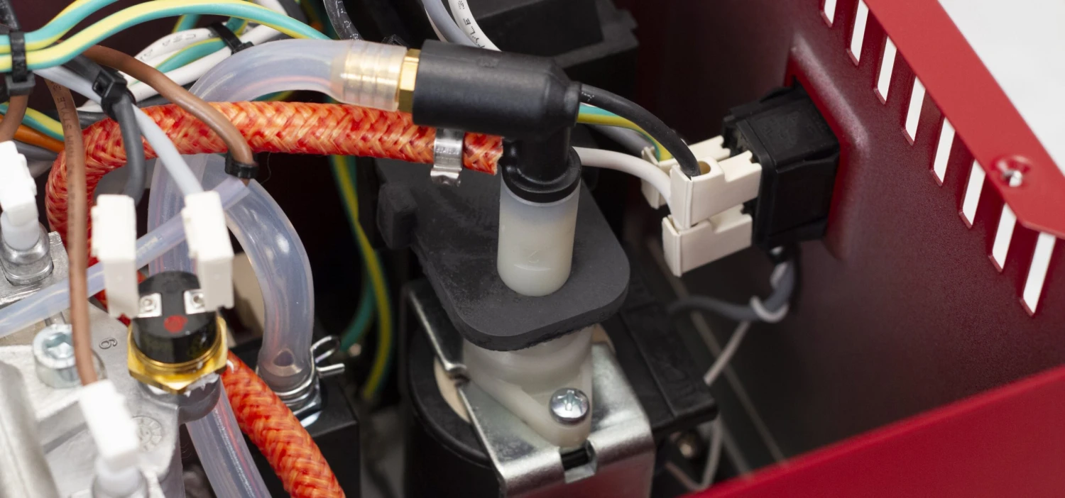 To operate the machine, a suite of high quality rocker switches are used to power the machine on and off, brew, and switch between brew and steam mode. A pair of two thermostats regulate the boiler for brew and steam temperatures with LED ready lights to indicate when the machine is up to temp for your selected mode.