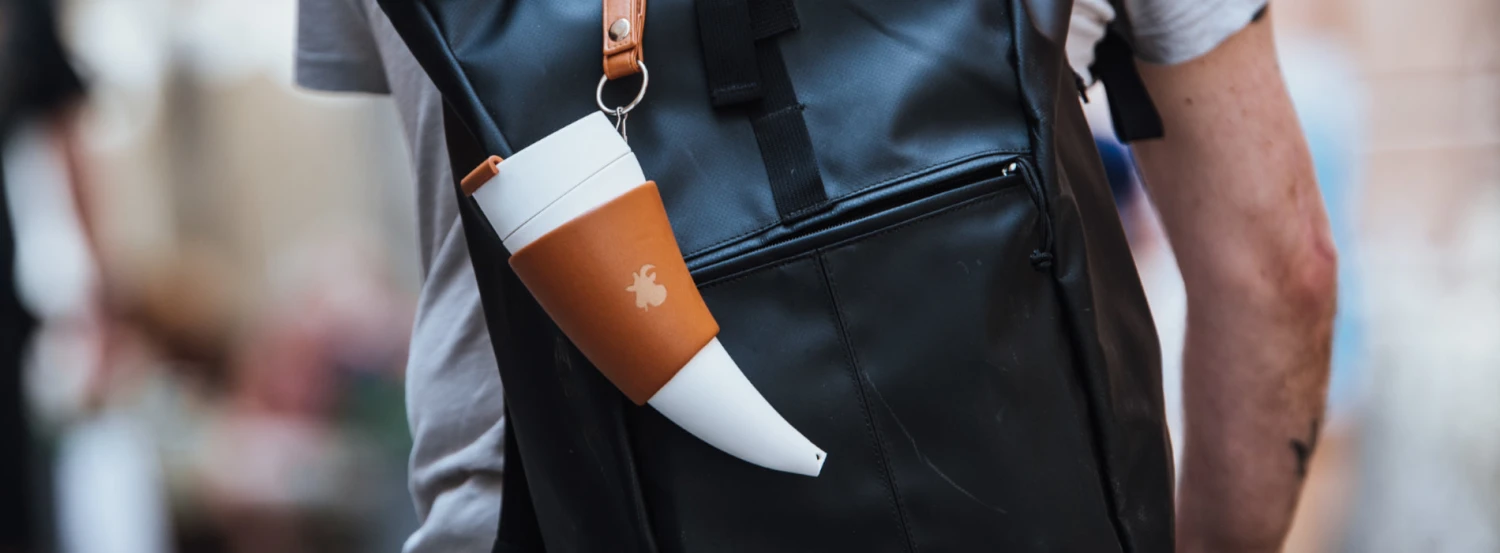 When coffee is the most important part of your day, why make it boring? With the Goat Story Goat Mug in real brown or black leather, you can enjoy a 100% leak proof travel mug while making a statement. Once you’ve arrived at your destination, the leather sleeve pulls double duty and can removed and used as a stand for the horn.