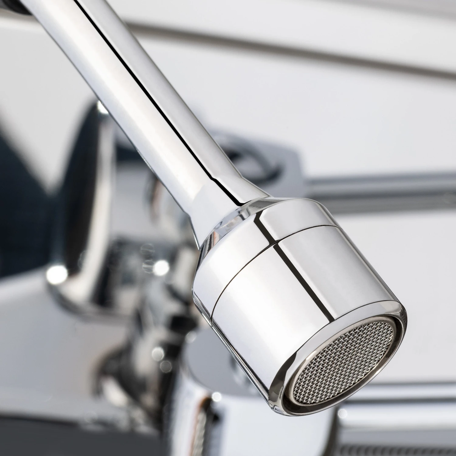From the outside, the housing is constructed of polished stainless steel, and the side cutouts reveal a modern matte black panel. These panels in combination with the distinctively shaped steam and hot water arms make for a stand out addition to any counter top.