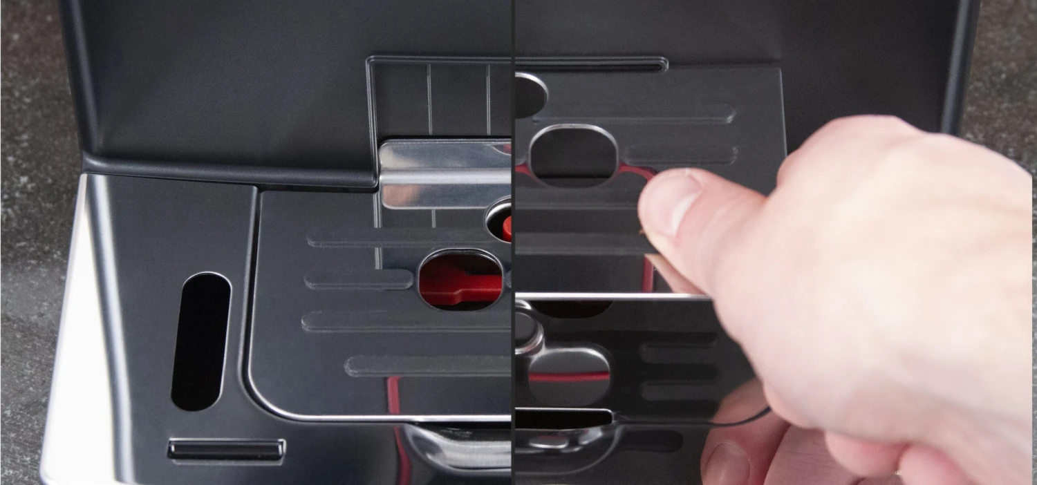 Improving on more than just the brewing performance, the aesthetics of the machine have been updated in a similar fashion to Cadorna series. In addition to the full color display, attention has been paid to the spout assembly and drip tray, adding striking red accenting, a secure magnetic cover, and the subtle but genius stainless steel cup platform that can be attached to the front of the machine to prevent splashing when brewing into smaller cups.