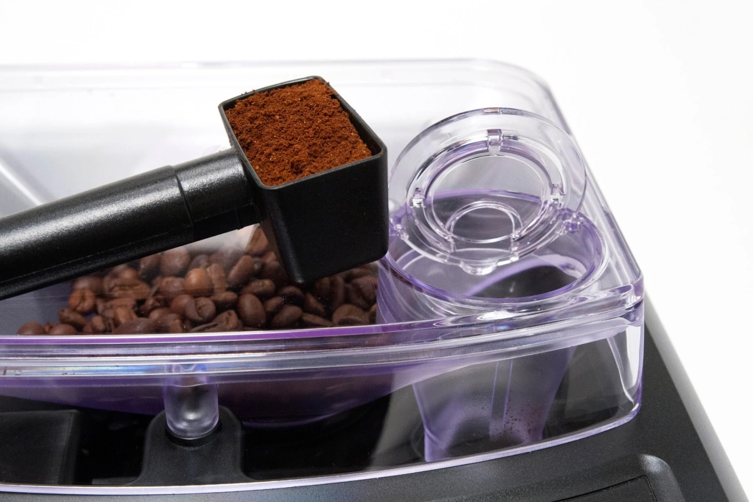 Ceramic is the material of choice when you want precise grinding with minimal heat transfer. Ceramic burrs last longer, and won’t rust if any moisture gets into the bean hopper. The Velasca’s grinder has 10 settings ranging from extra fine for crema rich espresso to coarser grinds ideal for lighter American style long coffees. When the need for decaf arises, the bypass doser allows you to fill the brew group directly without having to empty the bean hopper.