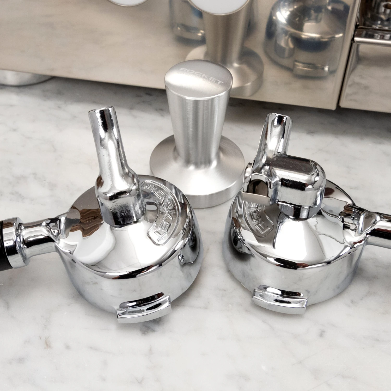 Rocket is a stickler for detail and the Appartamento really highlights that fact. Its hyper stylized steam and hot water knobs feature an easy grip gear design and Rocket’s iconic “R”; the wide feet resemble espresso pucks, and the laser cut side panels reveal a copper or white underbelly, all of which is rounded out by a striking mirror finish. Like any Rocket fan, we’re in love with the aesthetics on this compact machine.
